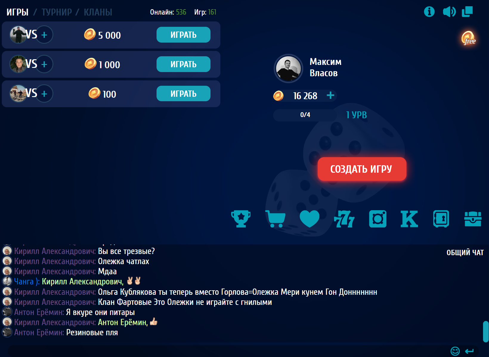 Классические онлайн нарды, где вы сможете участвовать в турнирах, играть с друзьями и общатия в чате, доступны для пользоватей игры 1000. Для этого вам нужно перейти в игру и в верхний части игрового поля перейти по ссылке "Нарды онлайн".