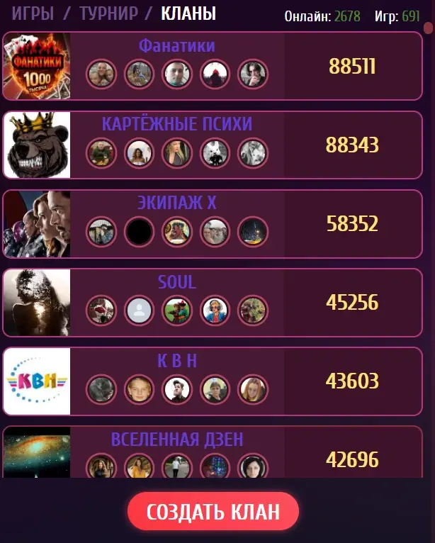 2. Очки клана даются за всевозможные действия и победы в игре в зависимости от ставки.